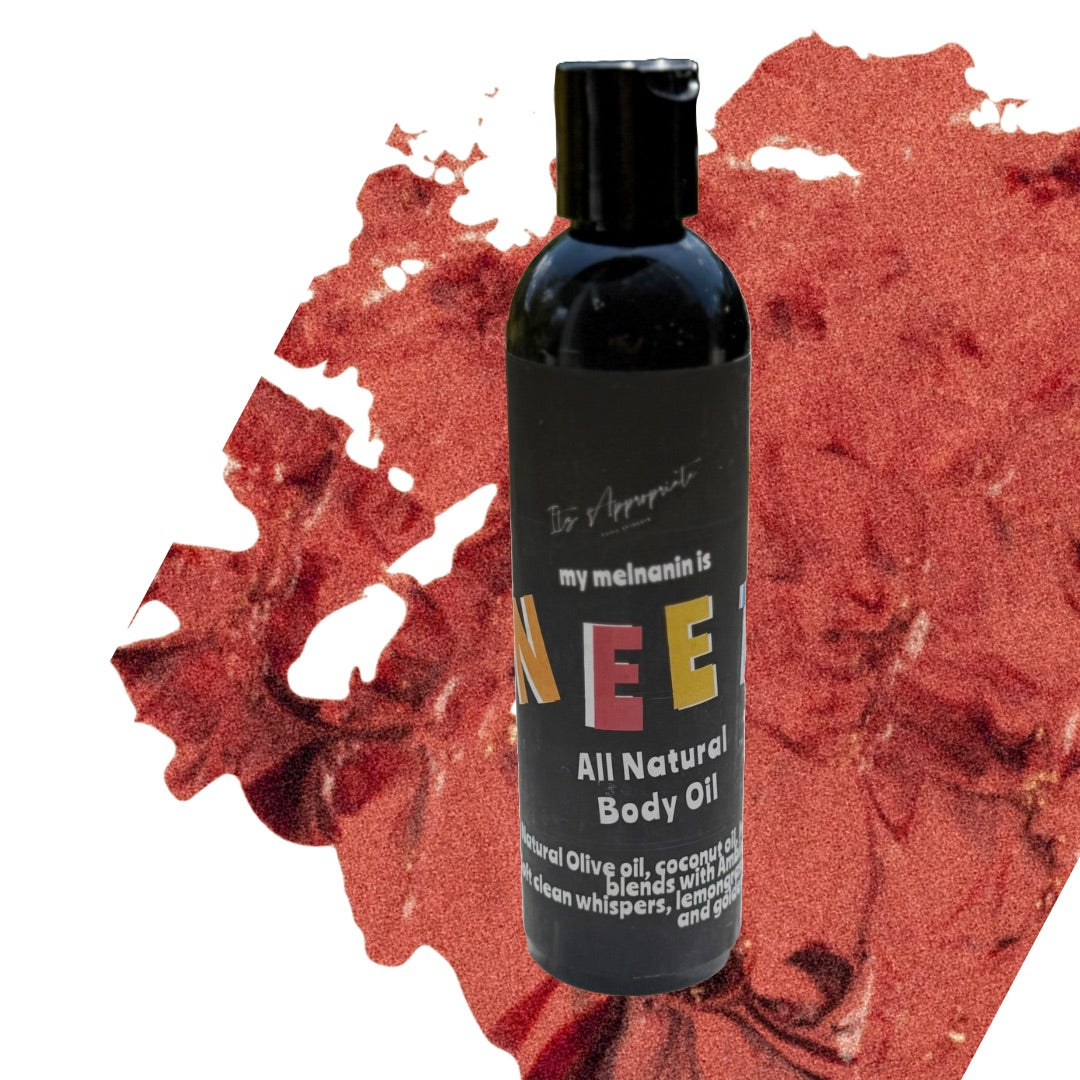 The best total body oil created for our largest organ. From head to toe, Itz time to indulge, Itz time to embrace, Itz time to feel, Itz time to hydrate what our body thirsts for. Our anti-aging, moisturizing, toning, and weather protecting body oil made with Rice Bran, Jojoba Oil, Vitamin E, Coconut Oil, and Pure Shea butter infused blended signature fragrances that are skin safe, toxic free, cruelty free, and vegan friendly.