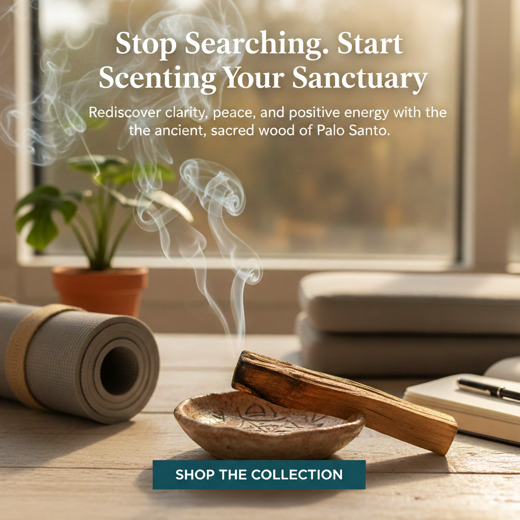 This isn't just woodsmoke. It's Palo Santo, the ancient "Holy Wood" that instantly kicks out bad vibes and invites pure calm. With sweet notes of citrus and pine, it’s your 5-minute ritual to daily peace.
