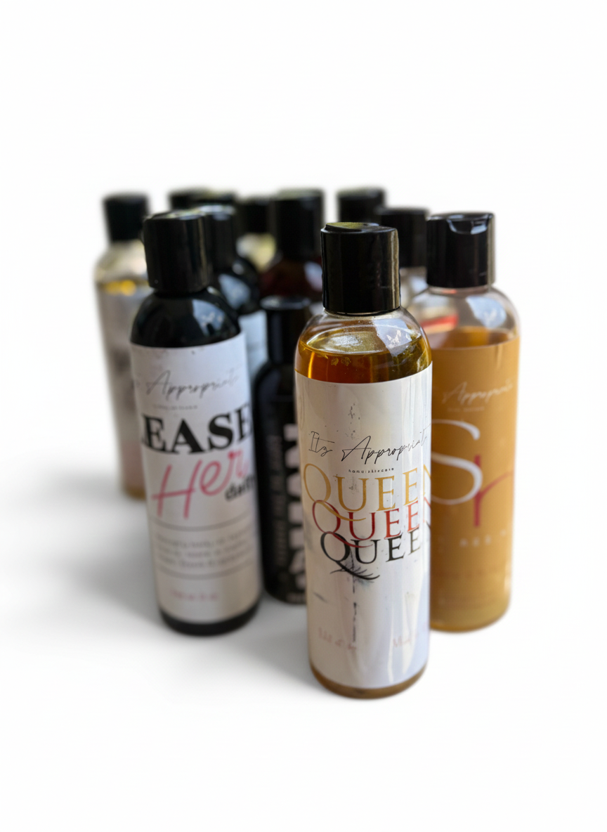 The best total body oil created for our largest organ. From head to toe, Itz time to indulge, Itz time to embrace, Itz time to feel, Itz time to hydrate what our body thirsts for. Our anti-aging, moisturizing, toning, and weather protecting body oil made with Rice Bran, Jojoba Oil, Vitamin E, Coconut Oil, and Pure Shea butter infused blended signature fragrances that are skin safe, toxic free, cruelty free, and vegan friendly.